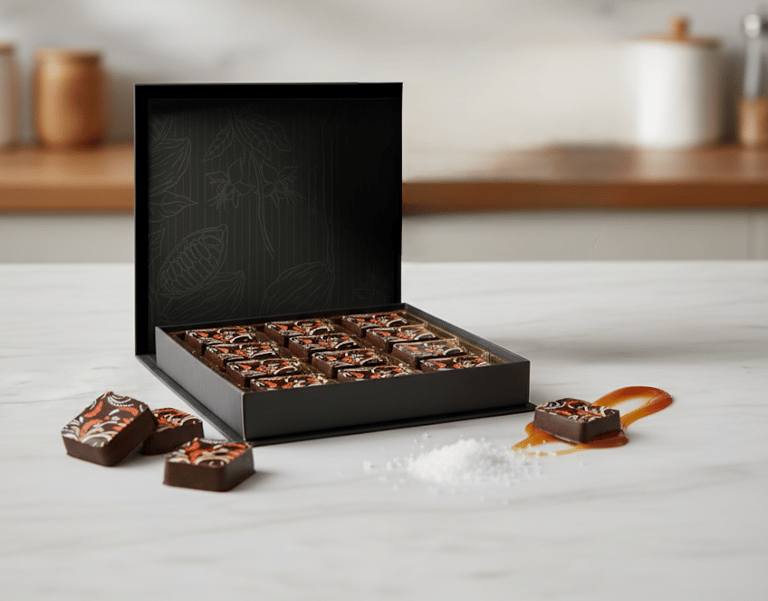 Showcased Craftsmanship: The packaging should reflect the artisanal nature of the hand-crafted chocolates.